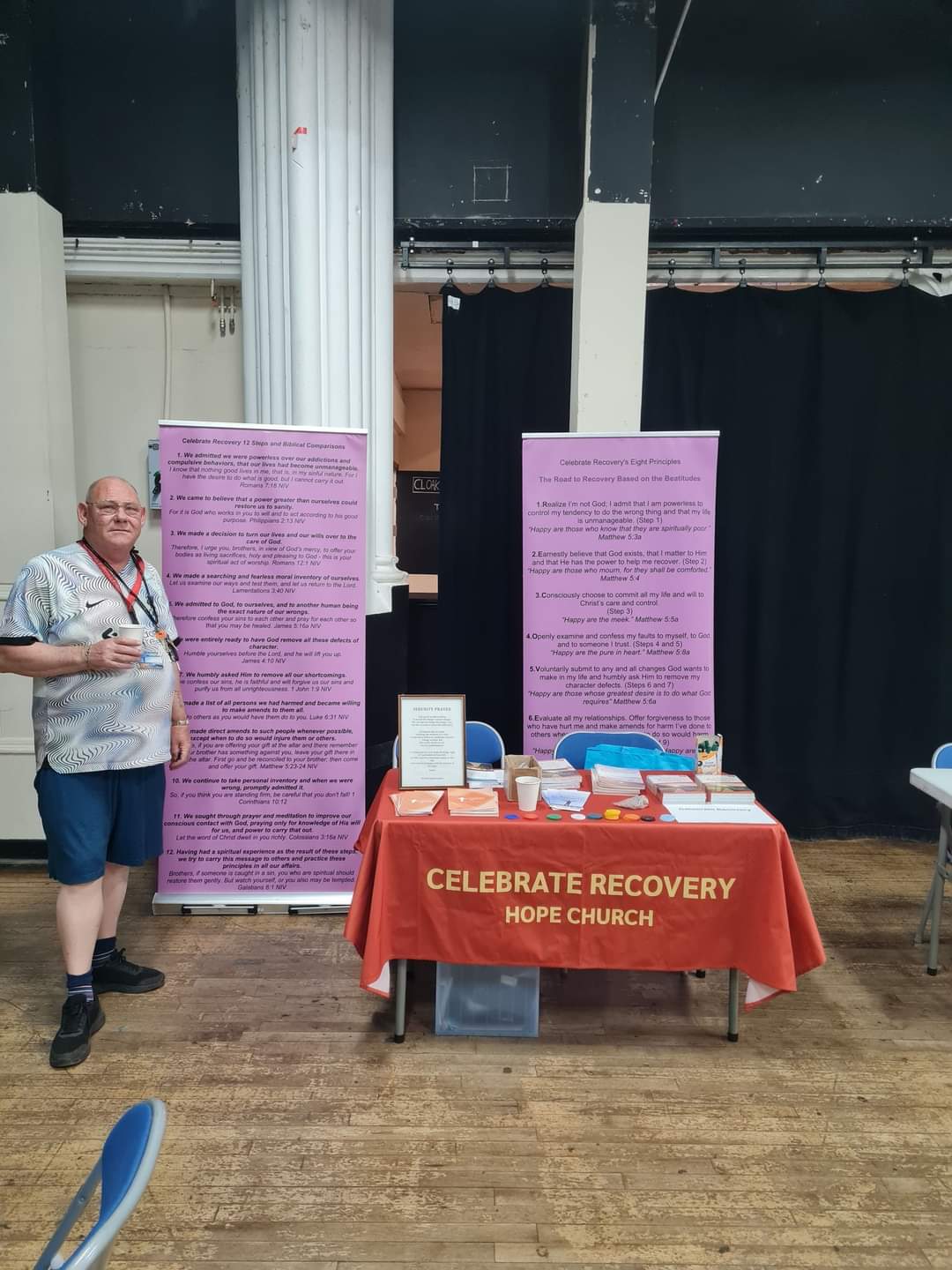 On the 20th June, I took Celebrate Recovery to the Recovery Festival in Bristol, an event I attend every year. The festival featured 40 stalls focused on various aspects of recovery, but our stall stood out because we were the only one that recognised Jesus Christ as Higher Power. This unique aspect sparked a lot of interest and comments from attendees. It was also a fantastic opportunity to distribute our flyers, and many people showed great interest in our message and programme.